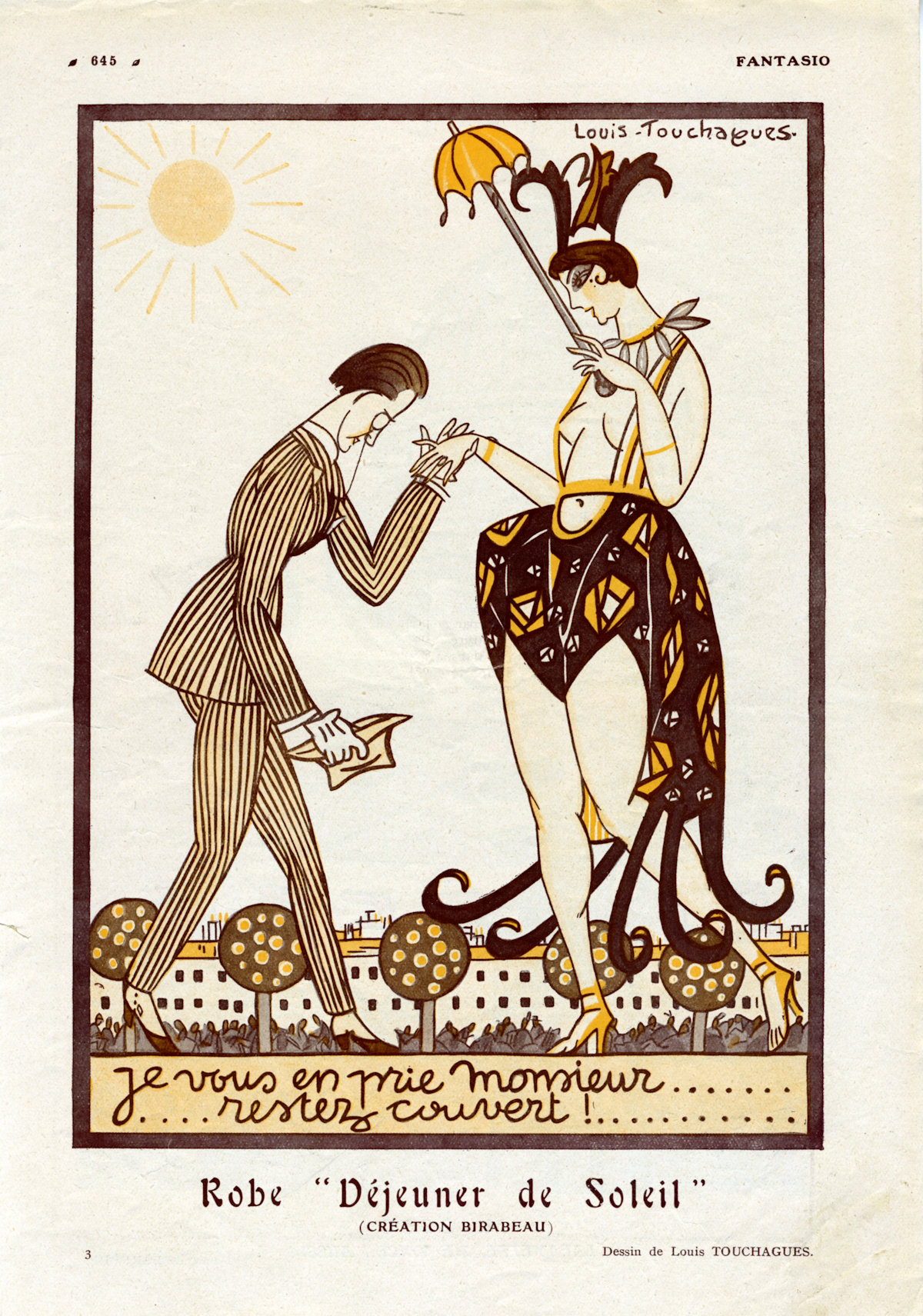 moins un dessin de Touchagues. Nous savons qu’il a produit des illustrations pour d’autres journaux comme Paris Magazine ou Les Annales Politiques. Cette recherche progresse lentement. Vous trouverez une soixantaine de résultats vérifiés dans le document PDF téléchargeable ci après