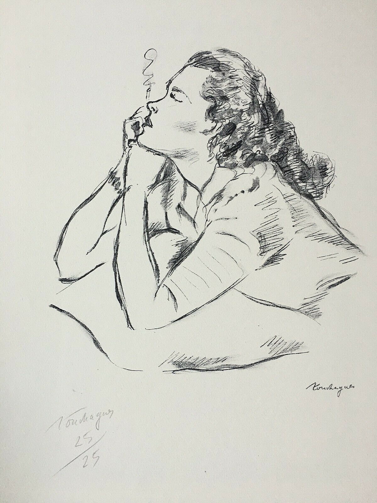 Touchagues a commencé à produire et vendre des lithographies dès le début de sa carrière artistique. On en connaît deux de sa période lyonnaise. Ensuite, jusque dans les années 50, l’essentiel de sa production de lithographies et d’estampes se fera au travers des livres d’art. A partir du milieu des années 50, et jusqu’à la veille de sa disparition il recommencera à en produire à l’unité avec des tirages pouvant atteindre quelques centaines d’exemplaires. Il est assez difficile de se faire une idée de sa production sur cette période de sa vie, probablement au moins une vingtaine. Cela demanderait une recherche approfondie dans la presse artistique des années 50 à 70, recherche qui reste à entreprendre. On trouvera un petit échantillon de ces travaux, bien loin d’être complet, dans le tableau ci après :