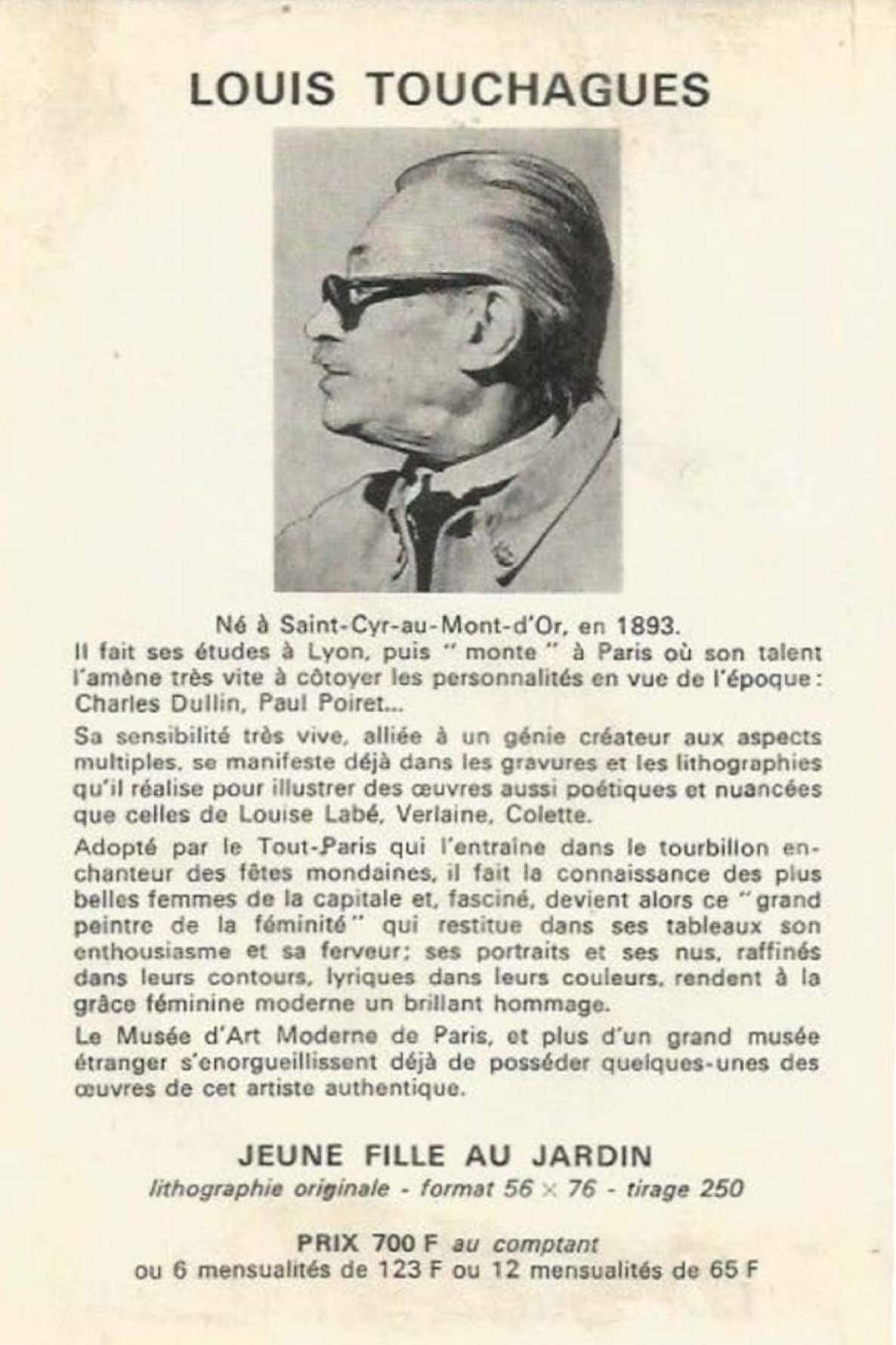 Enfin, deux publicités de la période 1950-1970 proposant des lithographies de Touchagues