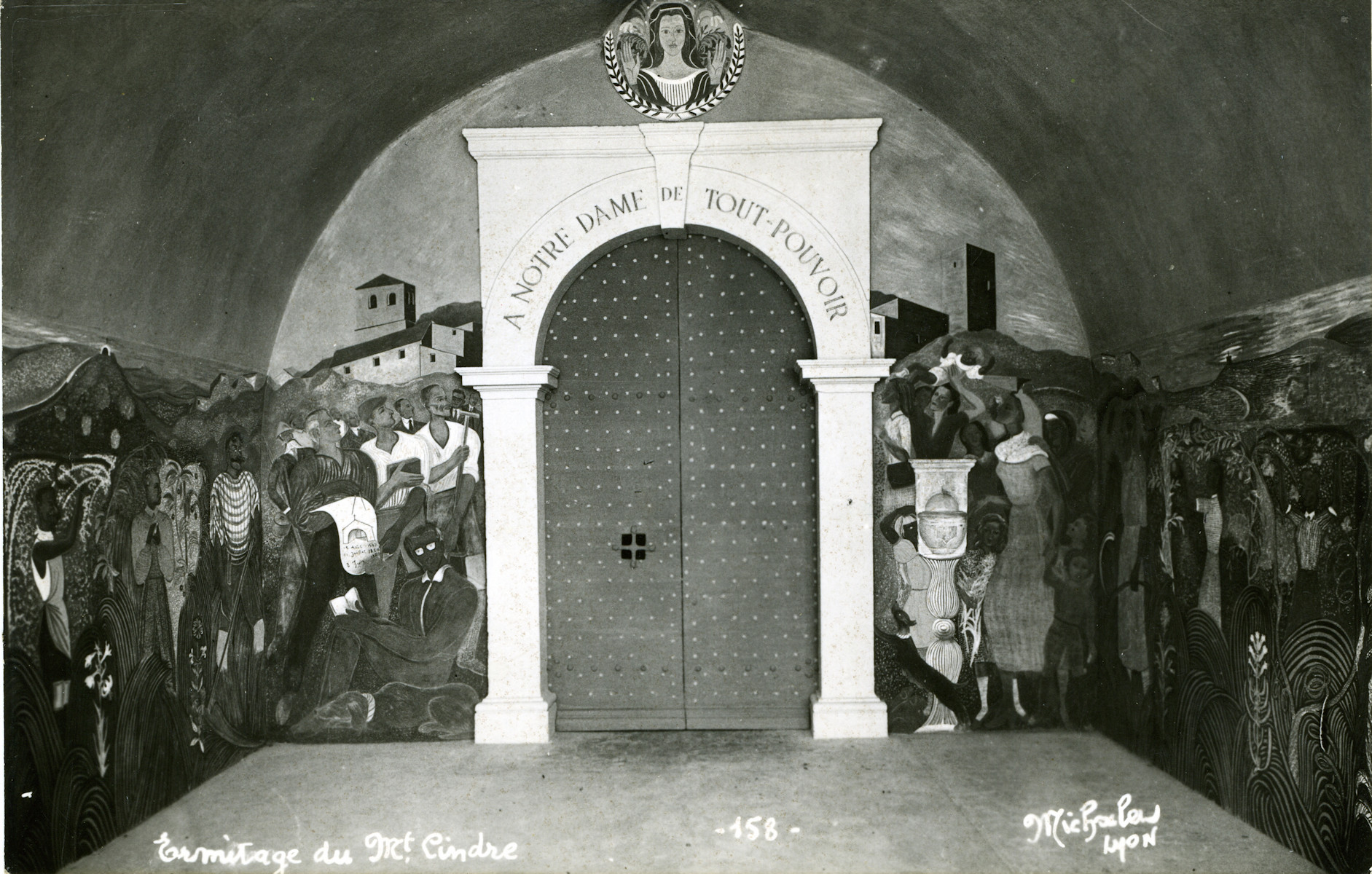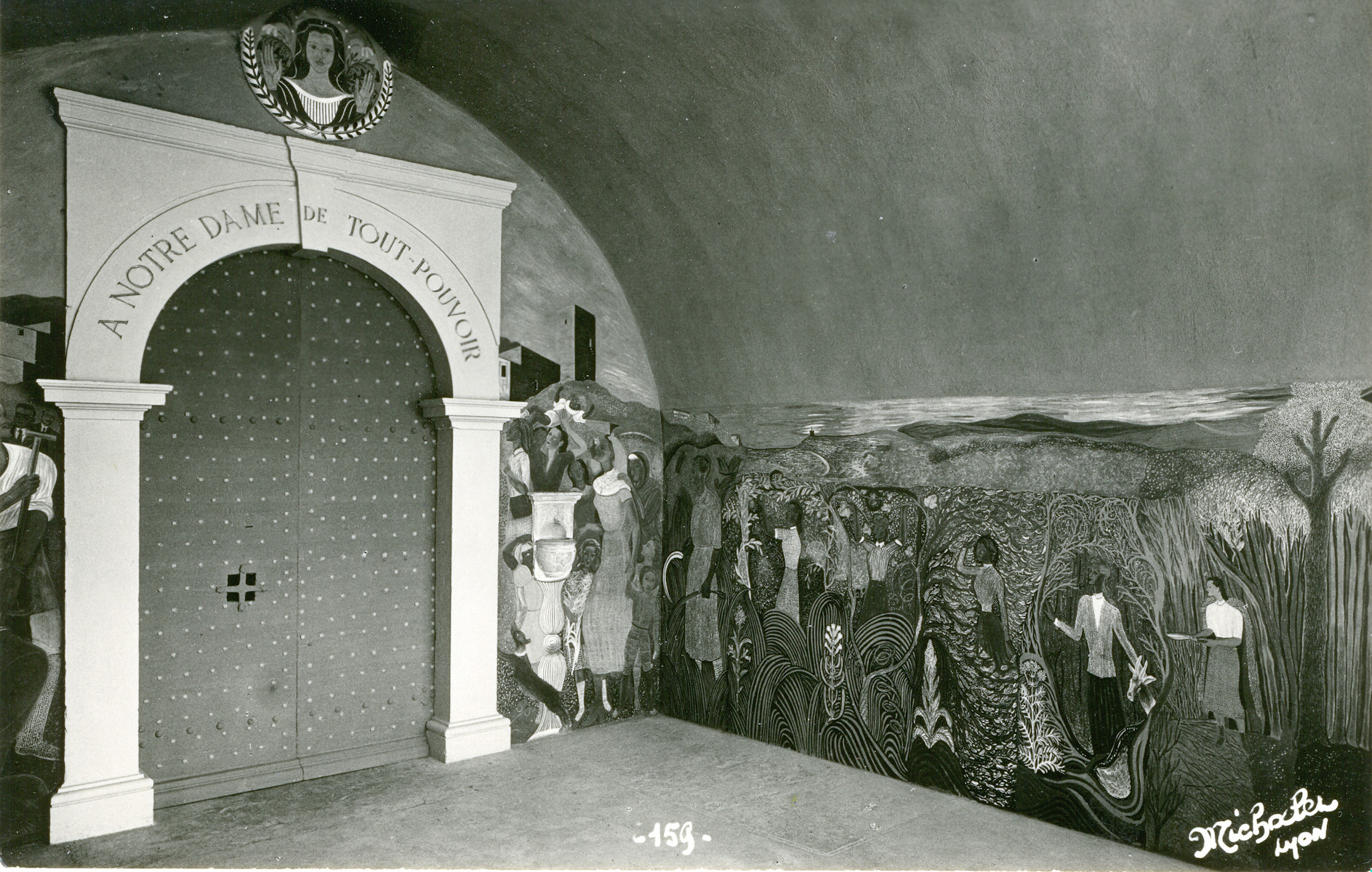 Cartes postales des fresques du porche, début des années 50. Studio Michalet, Lyon