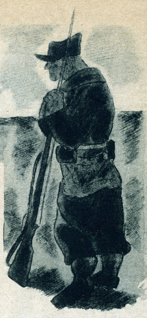 Deux techniques différentes, aquarelle d’un coté, dessin au trait de l’autre, ont été utilisées. On ne retrouvera pas ces techniques dans les illustrations qu’il produira plus tard dans d’autres revues. Quelques unes de ses illustrations sont reproduites ci dessous :