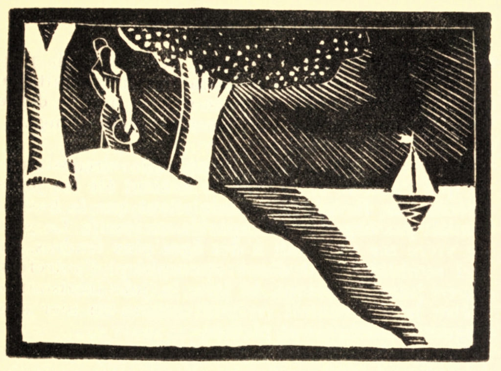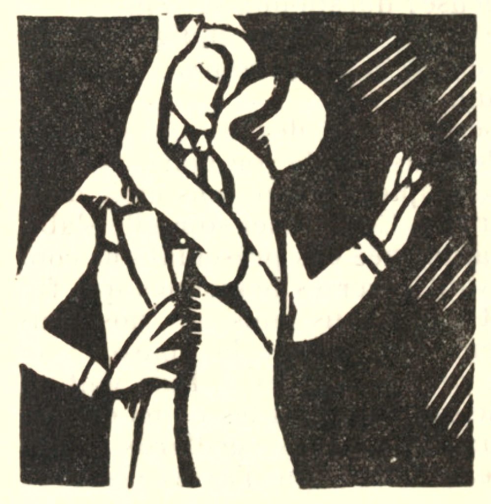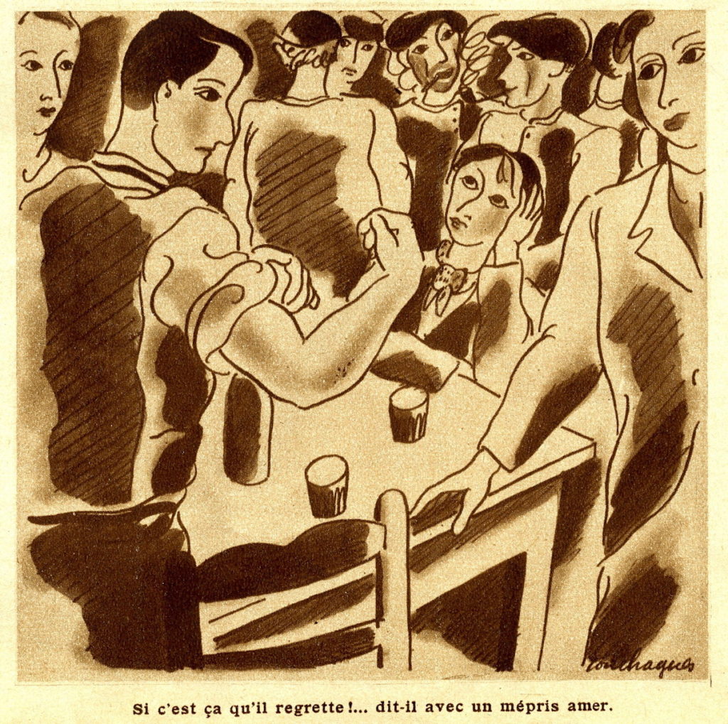 A peine installé à Paris, Touchagues a illustré un petit roman d’une quarantaine de pages de Gabriel-Joseph Gros : « Un Parfum d’Aventure » publié dans le numéro 12 de mars 1925. Ses bois gravés produisent des images en noir et blanc assez fortes voire brutales. En voici 3 :