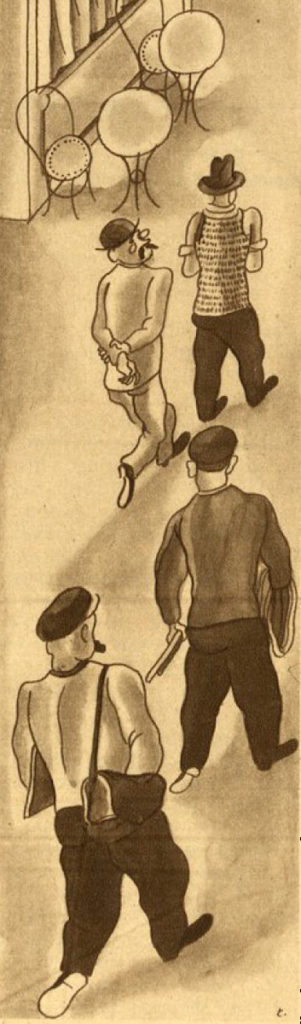 Chaque récit est accompagné de quelques illustrations en noir et blanc dessinées au trait et à l’aquarelle. Le dessin est d’un style un peu plus noir et brutal que ceux de la revue L’Image. Certains de ces dessins portent la signature complète de Touchagues, d’autres un simple t. et les autres aucune marque. Quelques exemples ci dessous :
