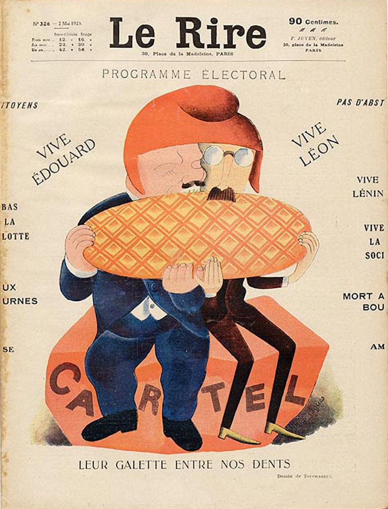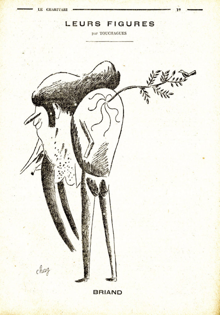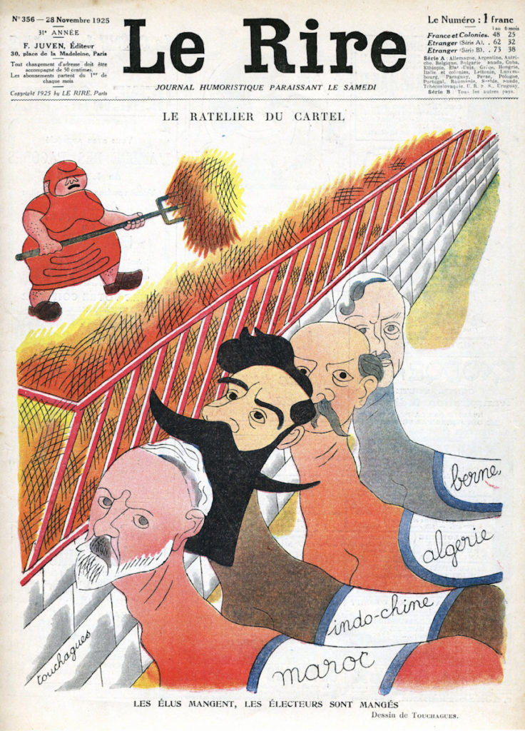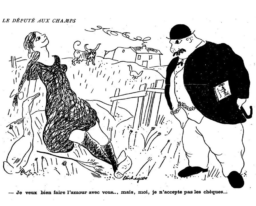 - 1924-1926. Les dessins qui ciblent des situations politiques. Le contexte politique, tant national qu’international est franchement conflictuel, et Touchagues a souvent la dent dure. En même temps, il est très actif sur d’autres journaux comme le Charivari.