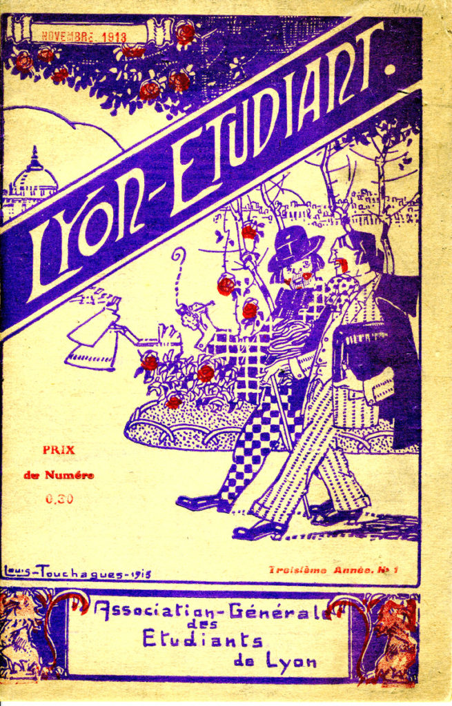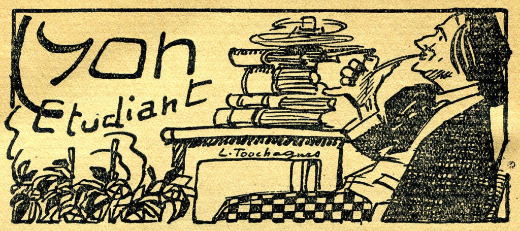 Cela va de l’image pittoresque de la vie lyonnaise (Chauds les marrons) à la caricature de l’artiste (Pour un fauve …) en passant par l’actualité et le portrait pas trop méchant (comme celui de Paul Cazeneuve, professeur à la faculté de médecine de Lyon et homme politique de la IIIe République, ci dessus). Certains de ces dessins ont eu une assez longue carrière. Par exemple, Touchagues a réutilisé « Pour un fauve, il a l’air bien timide » à Paris quand il a été admis au Salon de L’Araignée.