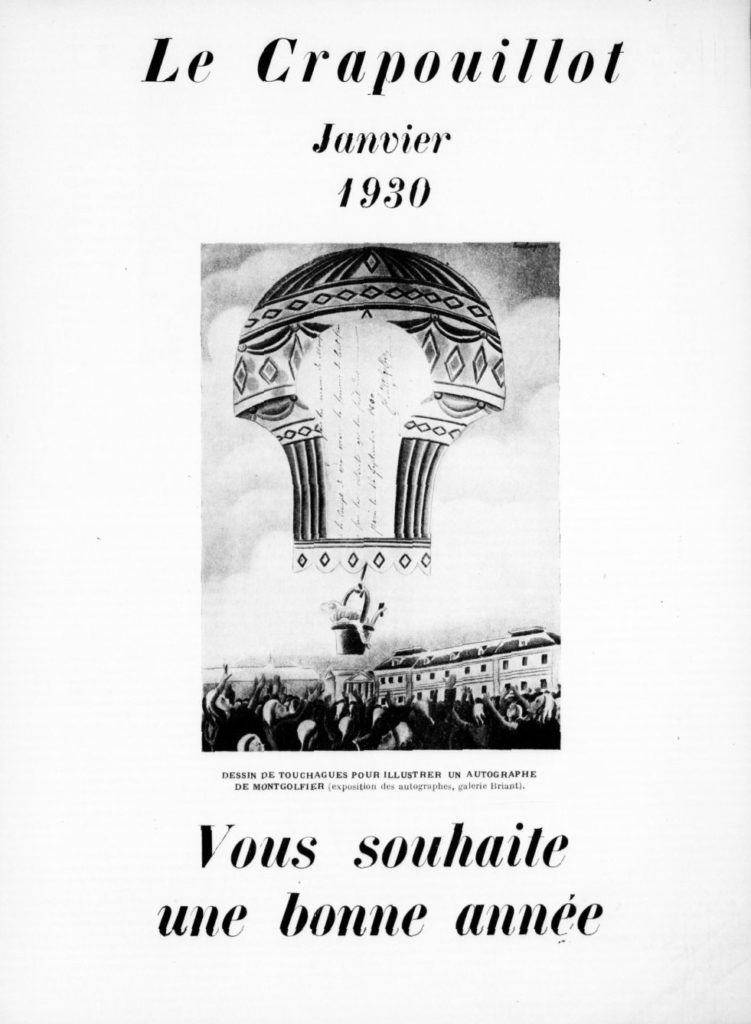 On ne trouvera plus de dessins de Touchagues dans cette revue après 1930. On lui doit cependant la belle page de vœux du premier numéro de la nouvelle série. A l’exception d’une caricature tardive d’un président du Conseil publiée dans un numéro de l’Histoire de la Guerre en 1948, on est plus loin de la politique que dans ses dessins dans Le Charivari, Le Rire ou Ecoutez-moi. On trouvera ci dessous une petite galerie de dessins.