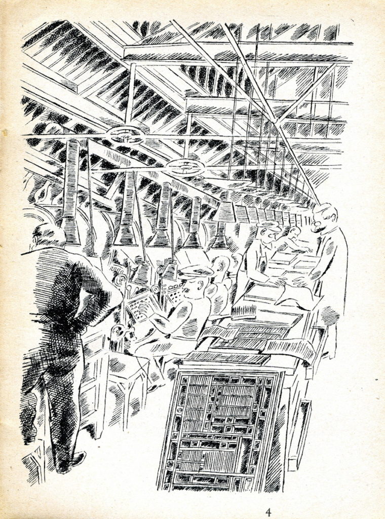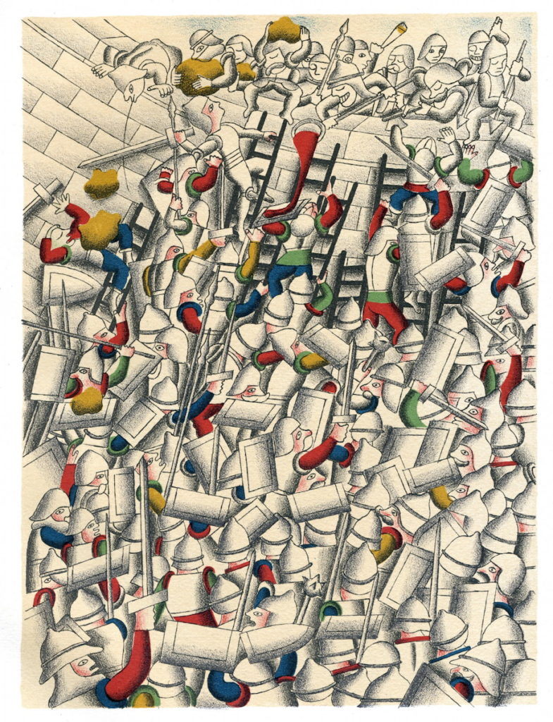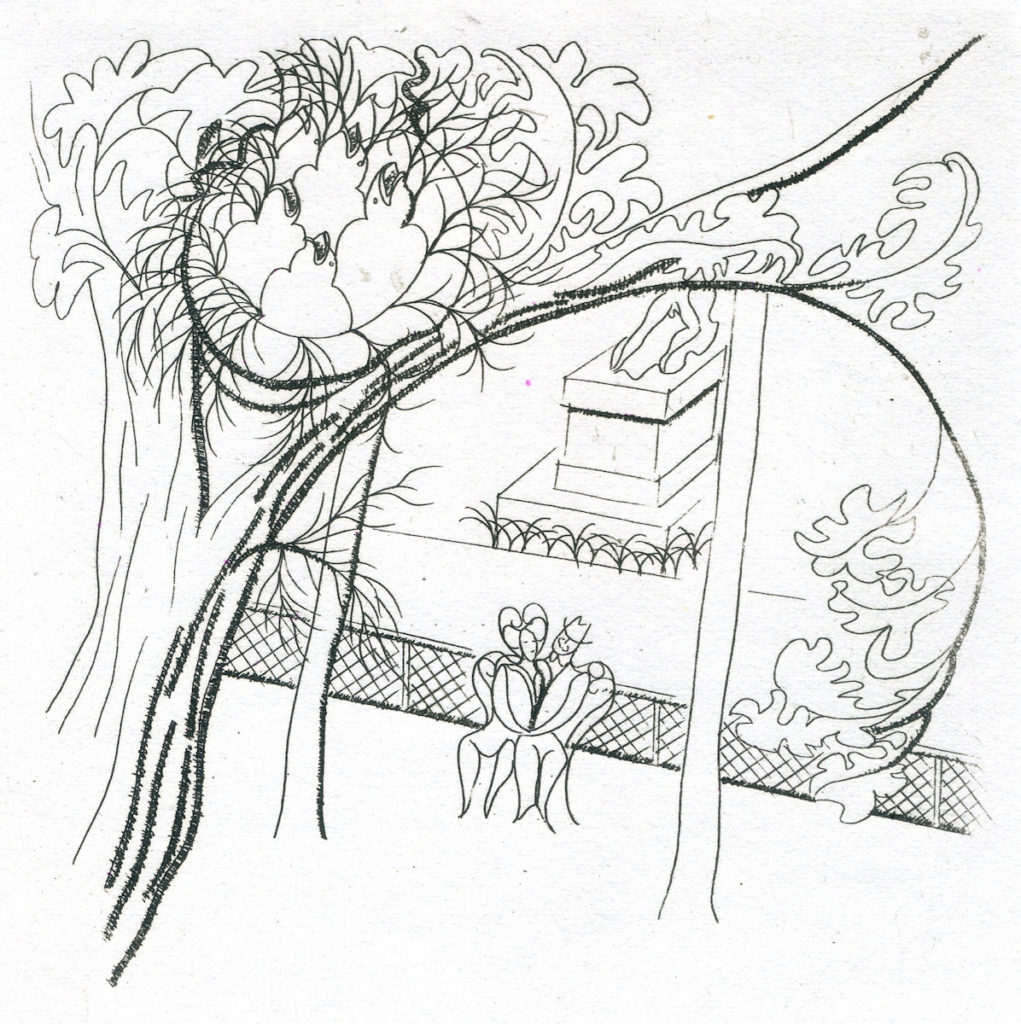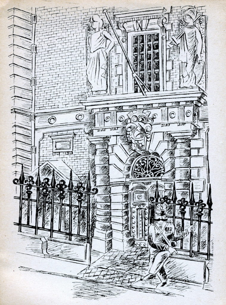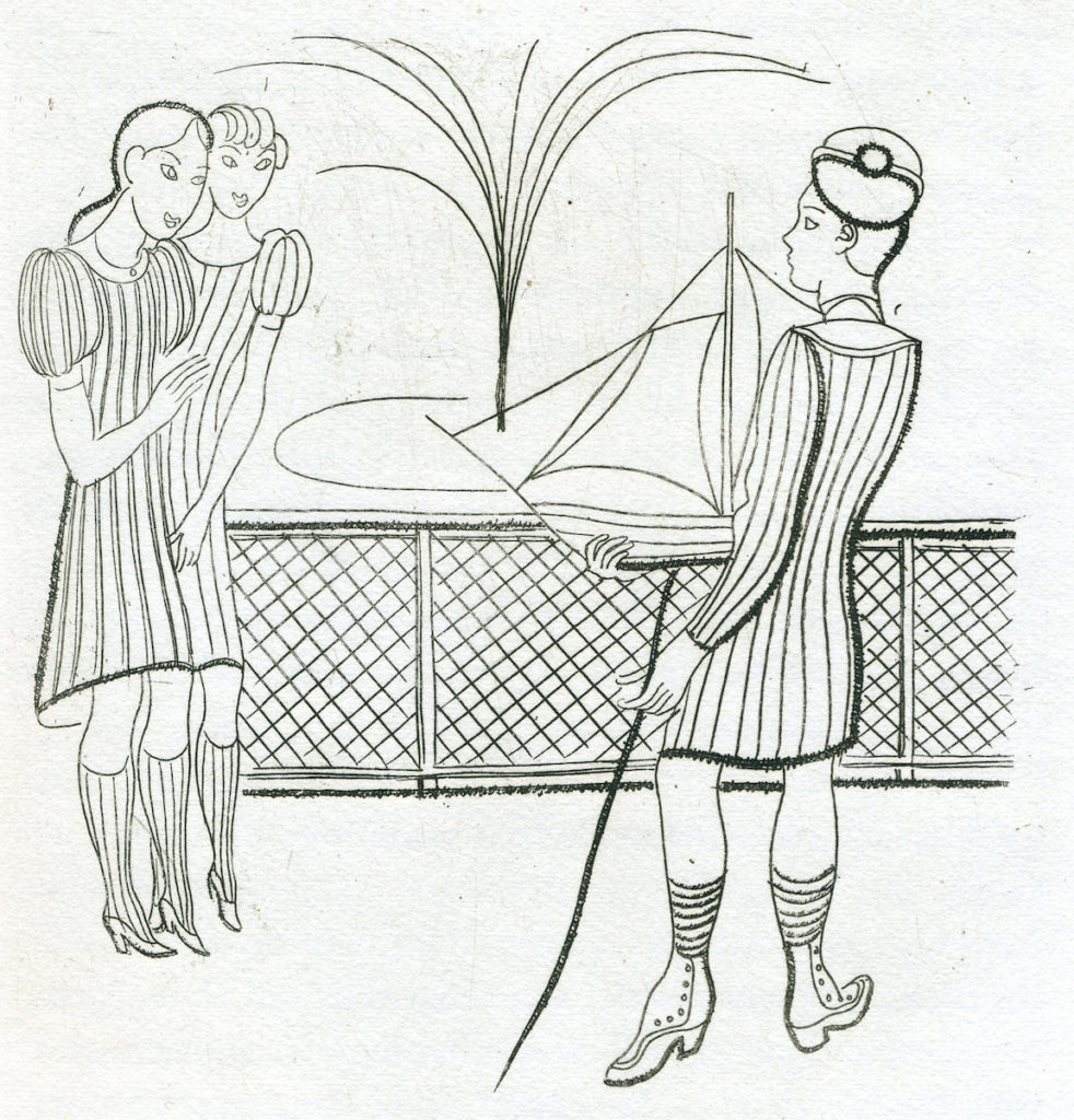 Pour ce livre, Touchagues a également dessiné des images en noir et blanc qui ont été intégrées au texte. La réalisation est là aussi de grande qualité. On est loin du dessin rapide des caricatures politiques et qu’il produisait en série à la même époque. En voici trois :