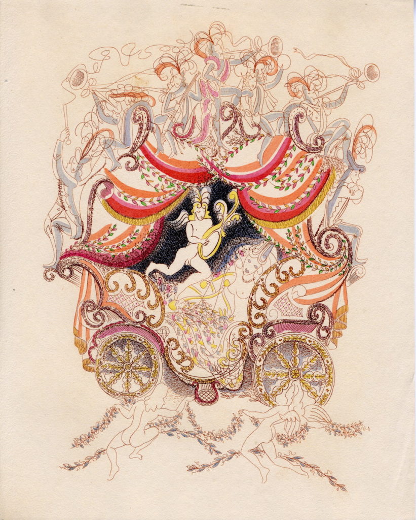 Le Carrosse du Saint-Sacrement est une comédie en un acte de Prosper Mérimée, publiée pour la première fois en juin 1829. Elle sera reprise de nombreuses fois, en particulier dans le célébrissime opéra bouffe La Périchole, de Jacques Offenbach, en 1868. En 1928, l’éditeur René Kieffer la republie en édition d’art non reliée, le texte étant encadré dans une sorte de scène de théâtre. L’ensemble, illustré par 10 eaux-fortes en couleurs de Touchagues est présenté dans une élégante boîte bleue. Ces eaux fortes fines et précises transportent le lecteur dans le monde hispanique colonial de la Périchole vu par Touchagues. C’est coloré et baroque à souhait mais reste ancré dans la réalité. Touchagues a bien quitté le surréalisme. Touchagues n’emploiera plus guère ce style de dessins dans la suite de son parcours. Ci après quelques images de ces eaux fortes.